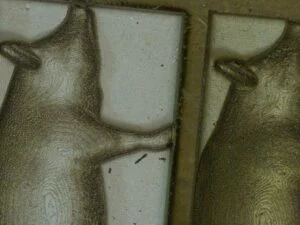 I engraved it at two different frequencies to show you the effect that can happen at low frequencies. Engraving was done in a split second. Definitely watch the YouTube video to see it in real life as otherwise you will not believe how fast this pattern was engraved. Blink and you will miss it.