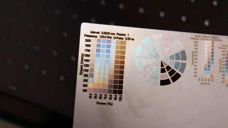 Engraving colors on stainless steel is a slow process that takes a lot of experimentation. You need to do a lot of test patterns to find more colors like I did with the ComMarker B4 60W MOPA in my previous article , since with different lens and machine combination, the colors will end up different. But once you find them, then you can use them whenever you want.