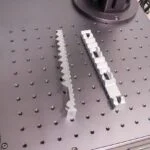 Anodized aluminum is one of my favorite metals to engrave. You can also take an advantage of the MOPA machine and carefully selecting the settings, you can achieve black, grey and white color, allowing you to make very cool keychains and tags or even engrave metal enclosures, motorcycle parts or tools. But an important thing to know is that this effect doesn’t work on raw aluminum. Engraving dark colors on anodized aluminum is made by heating the surface (not engraving it). Engraving dark on anodized aluminum takes much more time than a white engraving and the final result is completely smooth to the touch. You can’t feel in under the finger.