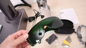 I don’t like the included safety glasses since they are a bit cheap for this kind of machine, and I recommend spending a few more dollars on THESE OD6+ safety glasses which I use and are still very cheap, but offer much more protection. Fiber lasers are very powerful, and you must protect your eyes.
