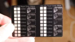 I went to measure it by engraving my high-speed test pattern and the interval test to see, how well it engraves at high speed and measure the laser spot size.