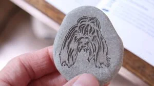 Then I tried to make a deep 3D engraving in stone as I haven’t done that before. I used the 3D engraving mode in Lightburn which takes a grayscale image for input and the darker the shade, the more passes will be run for that part, making smooth engravings with various depths.