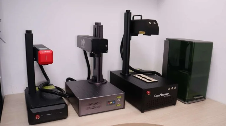The Monport GA60 and ComMarker B6 are using the newest “E2” model of the 60W JPT M7 MOPA laser source, and the older ComMarker B4 is using the older “E” version which is a larger unit, and this is why the B4 is much bigger than the other two.